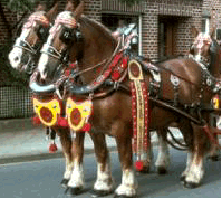 die aufwendige Anspannung dieser Kaltblutpferde, die heute noch von